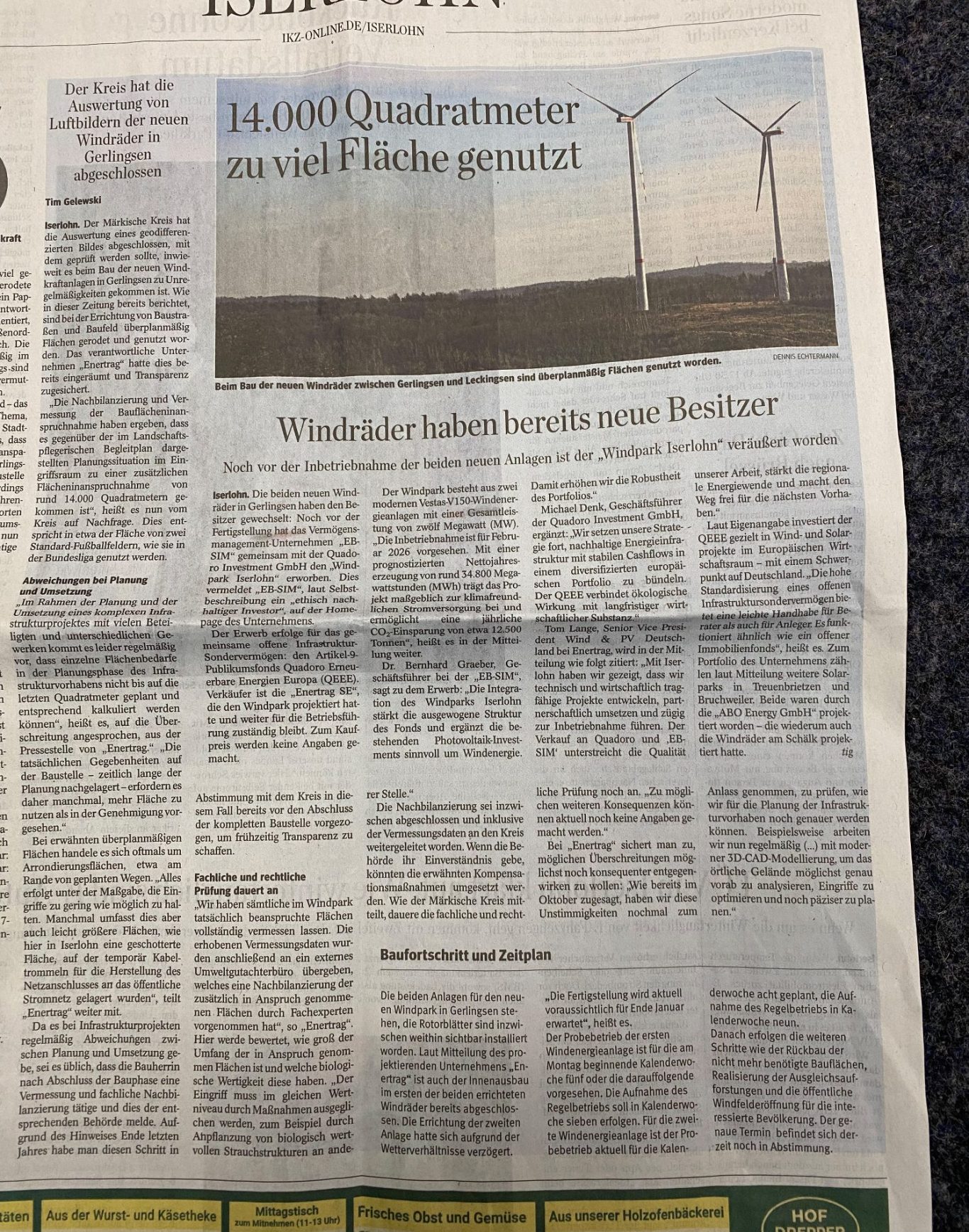 Und als sei es damit noch nicht genug der seltsamen Umstände rund um die Gerlingser Windenergieanlagen lief auch noch diese Meldung über den Zeitungsticker: